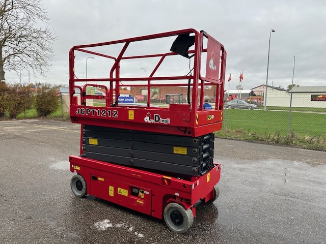 Dingli JCPT1212 – er en stabil saxlift med proportional styring af funktioner som gør det muligt at komme ind steder hvor underleg ikke er helt lige, da man med denne lift kan løfte undervogn hydraulisk i bagenden.