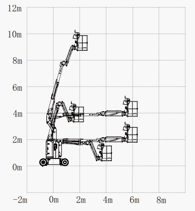● Med maksimal op- og overhøjde på 3,8m og maksimal horisontal rækkevidde på 6,35m, hvilket sikrer stærk betjeningsydelse.